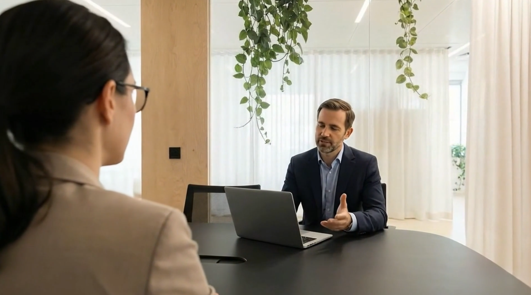 Unsere Lösung: Das Mitarbeitergespräch als interaktive Simulation. Die Lernenden erleben zunächst, wie ein Gespräch schiefläuft — falsche Gesprächsführung, unklare Ziele, fehlende Empathie. Anschliessend durchlaufen sie dasselbe Szenario richtig und lernen Schritt für Schritt, worauf es ankommt.